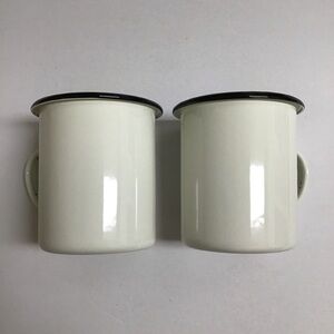 Hearth & Hand with Magnolia - Chip & Joanna Gaines - Enamelware Metal Mugs PAIR White with wide Black Rim Farmhouse Camping RV. Excellent preowned condition; appear new?