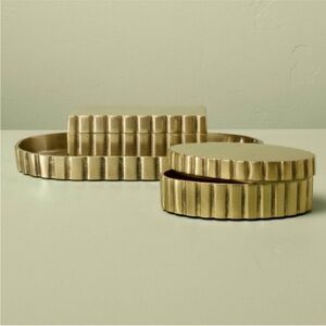 Elegant gold decorative box. Perfect for home accents. Adds a touch of sophistication.