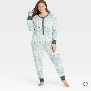 LARGE unisex reindeer chirstmas winter holiday good tidings union suit onesie pajamas from heart and hand with magnolia. White and green. New with tags. Thank you for visiting my closet and supporting a small business. Check out the rest of my closet for similar styles and sizes! Bundle three items and save 15%