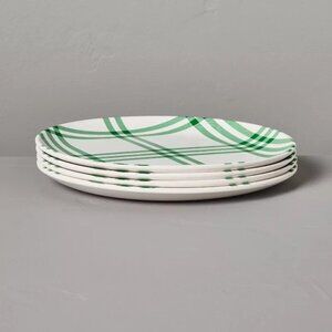 Hearth & Hand Magnolia 4pk 8.8" Tri-Stripe Plaid Melamine Salad Plates Green