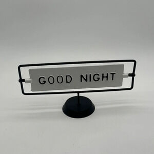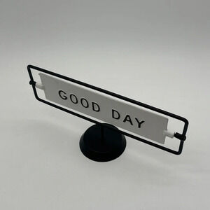 The sign features a quotable phrase that reads 'Good Day, Good Night' and is reversible, making it a versatile addition to any home. It comes with a metal base and is designed to be a tabletop decoration. The textured design and the use of high-quality materials make this sign a must-have for any home.