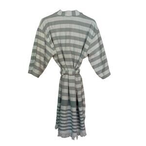 Hearth & Hand Magnolia Striped Cotton Robe Fringe Hem Belted Bath Spa Kimono