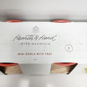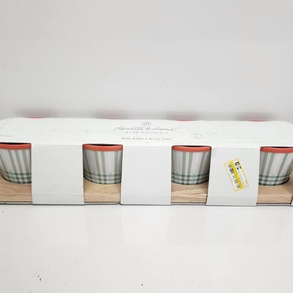 Hearth & Hand with Magnolia 4-Pack Mini Striped Plaid Dip Bowls on Bamboo Tray