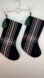Beautiful black and cream plaid stockings with rich green tassels and faux-leather hanging loops. Made from a linen-cotton blend with a fully lined interior. These add a clean, modern farmhouse touch to any holiday décor and look gorgeous hung on a mantel, staircase, or wall hooks. Both are in excellent condition with no flaws.