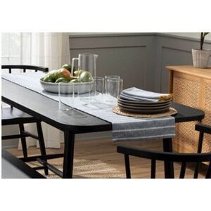 Add a touch of vintage-inspired style to your dining table with the Hearth & Hand™ with Magnolia Blue Stripe Table Runner. Made of 100% cotton dobby rib knit, this faded blue table runner measures 72 inches in length and 14 inches in width.