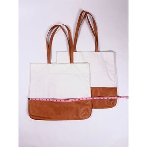 Hearth & Hand with Magnolia Canvas Leather Tote Bag | Neutral | Set of 2