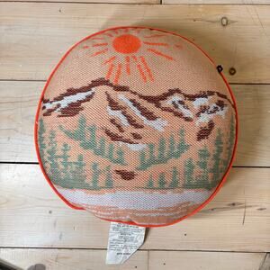 Hearth & Hand with Magnolia NWT 16" Embroidered Mountain Landscape Indoor/Outdoor Pillow - some fabric flaws on the back (see pictures)