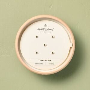Hearth & Hand with Magnolia NWT 4-Wick Rim Stripe Ceramic Sun & Citron Candle Blue