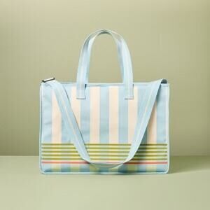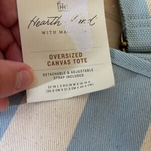 Hearth & Hand with Magnolia NWT Cross Stripe Carry All Tote Bag Blue Green Nat