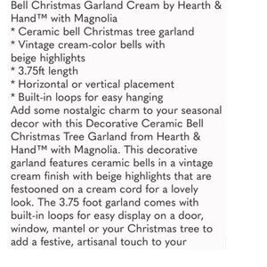 Hearth & Hand NWT Decorative Ceramic Bell Christmas Garland 3.75'