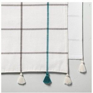 Windowpane Plaid Tassel Table Runner Teal/Gray