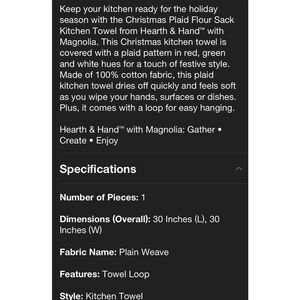 Hearth Hand Magnolia Christmas Plaid Kitchen Hand Towel