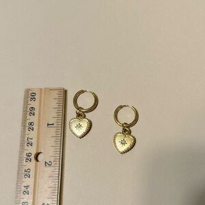 Heart dangle hoop earrings in gold tone hardware