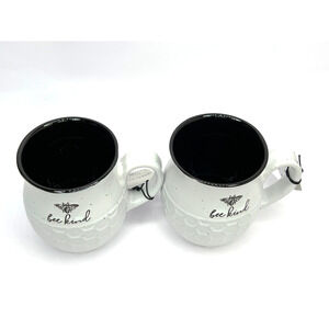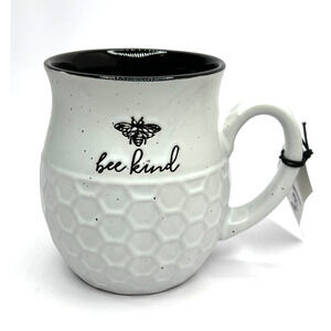 Heartland Hive White/Black 18 oz. Large Coffee Mugs BEE KIND Honeycomb Design.