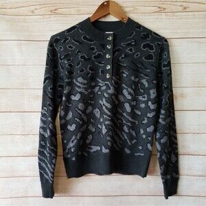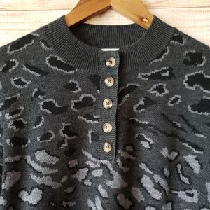 Heartloom Animal Print Knitted Henley Long Sleeve Sweater Women's Size Small