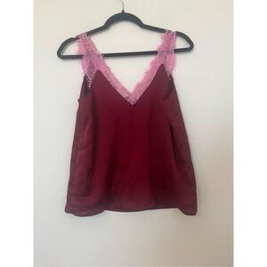 Heartloom Burgundy V Neck Floral Lace Cami NEW NWT