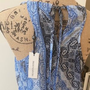 Heartloom is a New York based brand that combines East Coast sophistication with a laid back West Coast style that embodies the modern bohemian sprit. Heartloom is known for a casual, cool and modern sophistication that extends beyond its celebrity west coast clientele. Vintage inspired prints, delicate dresses and knitwear with unexpected, quirky details tell a strong story about the Heartloom lifestAdjustable shoulder straps with tie closure. Surplice neckline with button closure. Elastic hem.