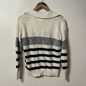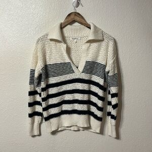 White and navy striped collared sweater from Heartloom. Size large.