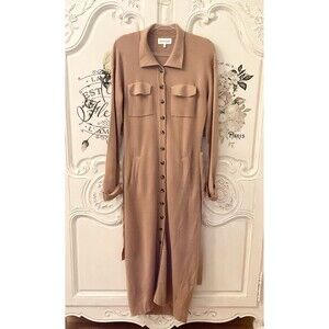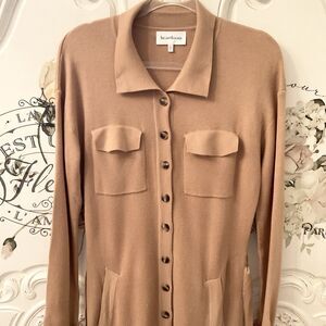 Heartloom Melina Cardigan Dress Women's S Camel Button Front Pockets Midi Belted