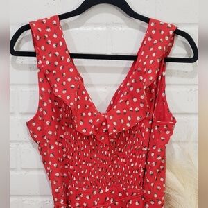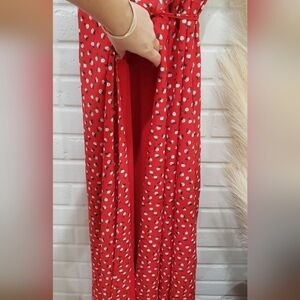 Heartloom Ruffle Collar Floral Wrap Maxi Dress Red Cream Green size Medium
