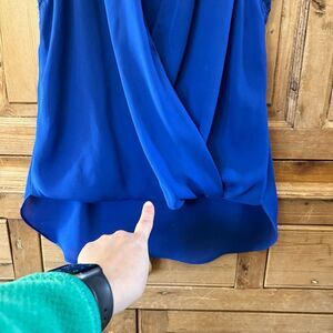 Heartloom Small Royal Blue Drape Neck Blouse Sleeveless Lace Slight Flaws