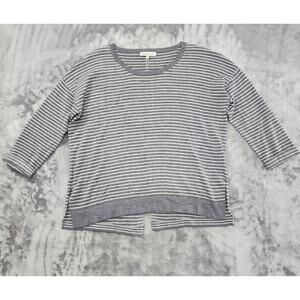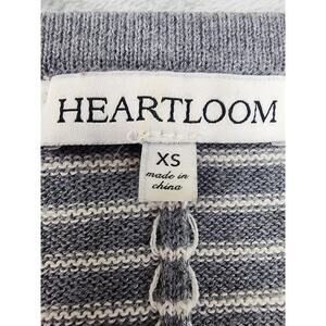 Heartloom Striped Merino Wool Crop Sleeve Sweater Size XS Gray White Back Slit Scoop Neck 3/4 Length Sleeve Rolled Cuff