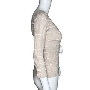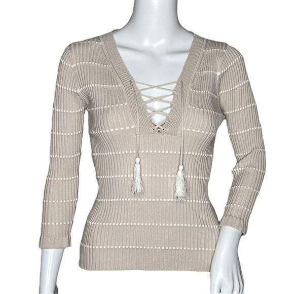 Heartloom Sweater Women XS Buff Beige Lace Up Ribbed Knit Tassel Tie Boho Casual