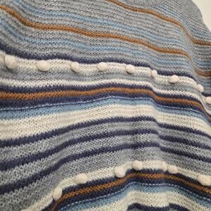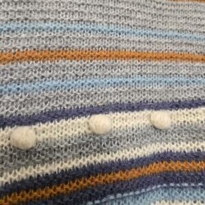Heartloom Wool Mohair Pom Pom Knit Sweater Size XS Gray Striped Casual Boho Fall
