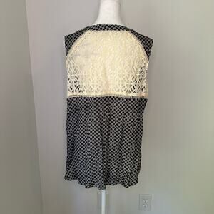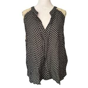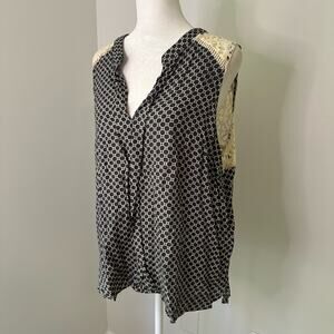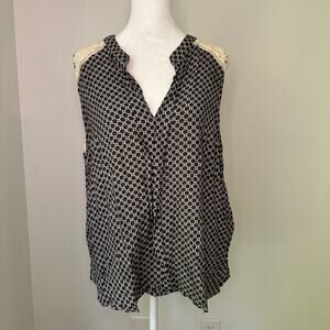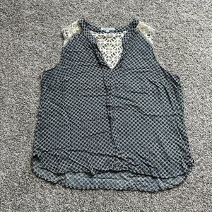 Heartloom navy & gray dor print lace back sleeveless top size XL