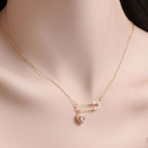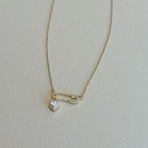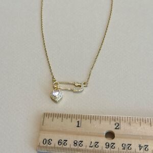 Diamond decor safety pin crystal heart pendant necklace in gold tone hardware