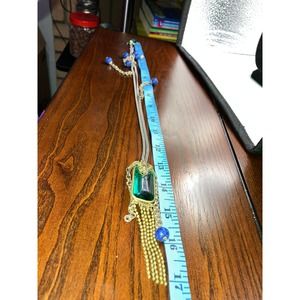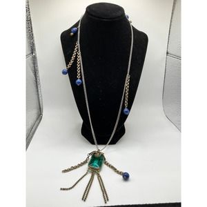 Green Rectangle Glass Pendant Blue Sodalite Multicolored Beads & Chains Dangles Mixed Media 17 Inch Necklace!