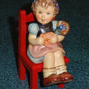 Up for sale is this 1st Issue "Heart's Delight" Goebel Hummel Figurine #698! This Hummel collectible features cute little girl with a heart and bouquet of flowers in her hands sitting on a red chair. Super cute! This figurine stands about 4-3/4" and is identified as #698. As you can see in the pictures it is in EXCELLENT condition with no chips, cracks, crazing or repairs and comes complete with the original box! Colors are nice and vibrant! This Heart's Delight Hummel would make a great display piece or addition to any Goebel collection!