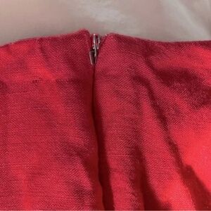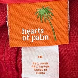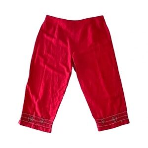 Hearts Of Palm | Red Embroidered Linen Blend Flat Front Cropped Pants, Size 16