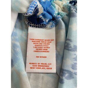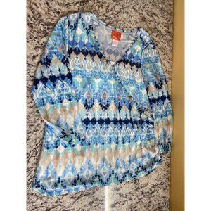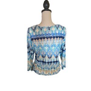 Hearts Of Palm Womens Medium Wrap Blouse Blue Geometric 3/4 Sleeve V-Neck Spring