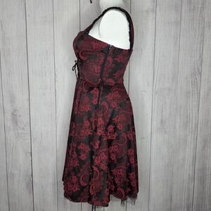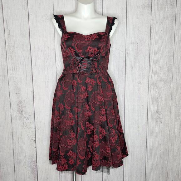 Hearts & Roses Corset Dress Gothic Lolita Black & Wine Red Floral, sz 12