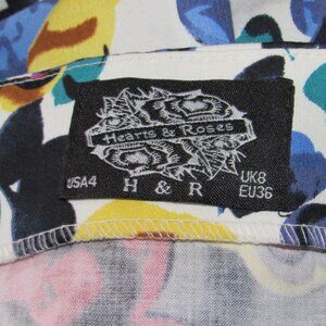 Hearts & Roses Floral Pin Up Dress Fit & Flare Retro Rockabilly Square Neck Sz 4