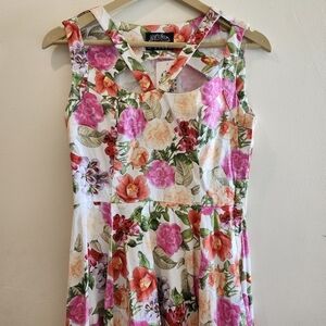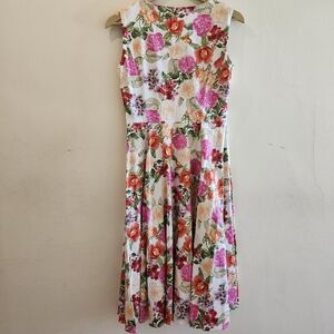 Hearts & Roses Retro Bright Floral Flowy Midi Swing Dress Size 6