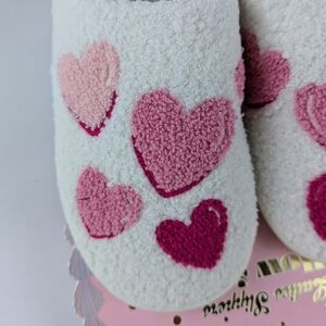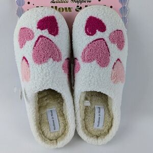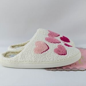 Hearts Slippers Sherpa Upper Fleece Memory Foam Slip On Ivory Pink XL (9/10) NWT