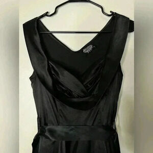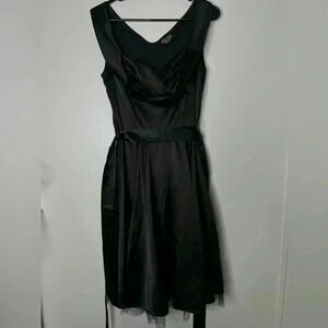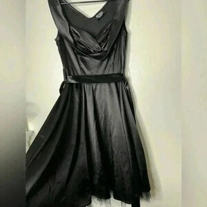 Hearts and Roses London Black Satin Skater Dress With Ruched Front Size Medium