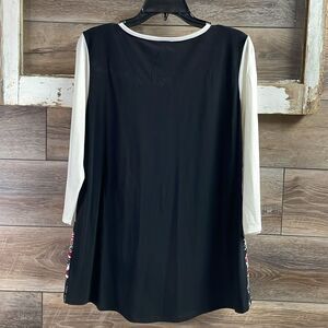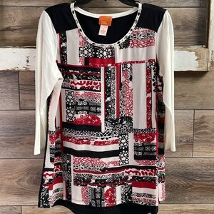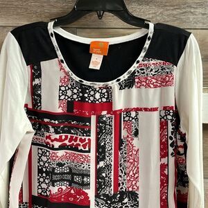 Hearts of Palm 3/4 Sleeve Blouse,Size Small, White,Black & Red Abstract Design