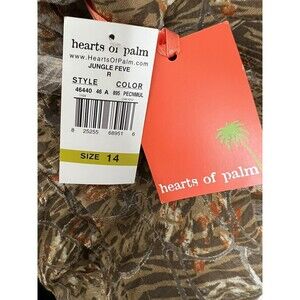 Hearts of Palm Blouse Size 14 Animal Print Semi-Sheer Collared Button-Down NEW