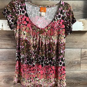 Hearts of Palm Ladies Scoop Neck Abstract Top, Size Small, Black,Pink, Beige