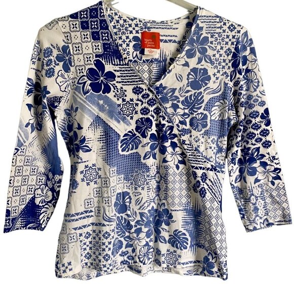 Hearts of Palm Petite Floral Cotton Blend Top Size Petite Small PS