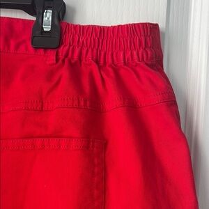 Vibrant red pants with stylish studded accents. Perfect for a bold look.