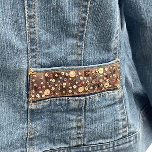 Hearts of Palm Women's Blue Beaded Denim Crop Jacket Size 14