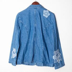 Hearts of Palm Women’s Denim Jacket Boho Charm Cottagecore Floral Applique Sz 14