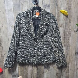 Hearts of Palm Black and White Tweed Blazer Jacket Cardigan
