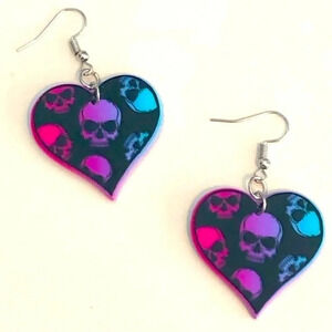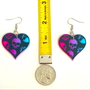 Hearts with Skulls Goth Dark Unique Halloween Drop Earrings