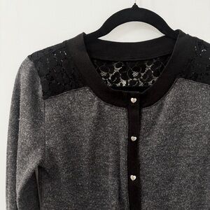 Heart-shaped button Princess Vera Wang Cardigan-Heather Gray and Black