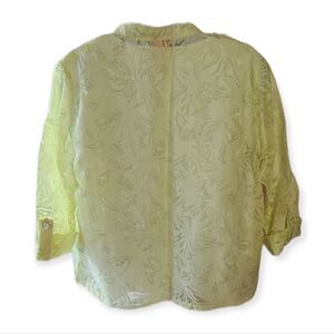Hearts of Palm 2 Piece Set, sheer sparkled burn out blouse/jacket in bright yellow/green and v-neck embellished top to go with. Top has spandex for comfort. What a fabulous set for that cruise, holiday or beach party!